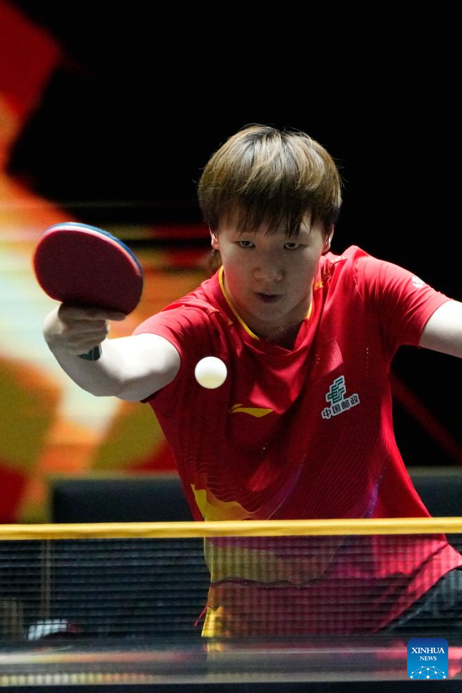 BEIJING, Sept. 29 (Xinhua) -- Women's singles second seed Wang Manyu advanced to the last 32 at the World Table Tennis (WTT) China Smash on Monday after defeating compatriot He Zhuojia in straight games.