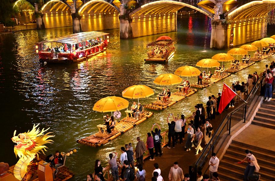 BEIJING, Oct. 5 (Xinhua) -- As China's National Day and Mid-Autumn Festival holidays converge, the nation's cultural activities, bustling transport networks and innovative consumption scenes are painting a vivid picture of economic resilience and growth potential.