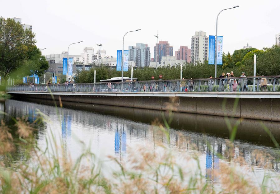 Street banners for the Global Leaders' Meeting on Women are pictured in Beijing, capital of China, on Oct. 12, 2025. (Xinhua/Du Zixuan)