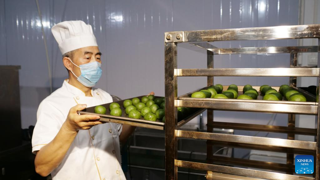 This photo taken on Sept. 4, 2025 shows matcha mooncakes in Jiangkou County, southwest China's Guizhou Province. (Xinhua)
