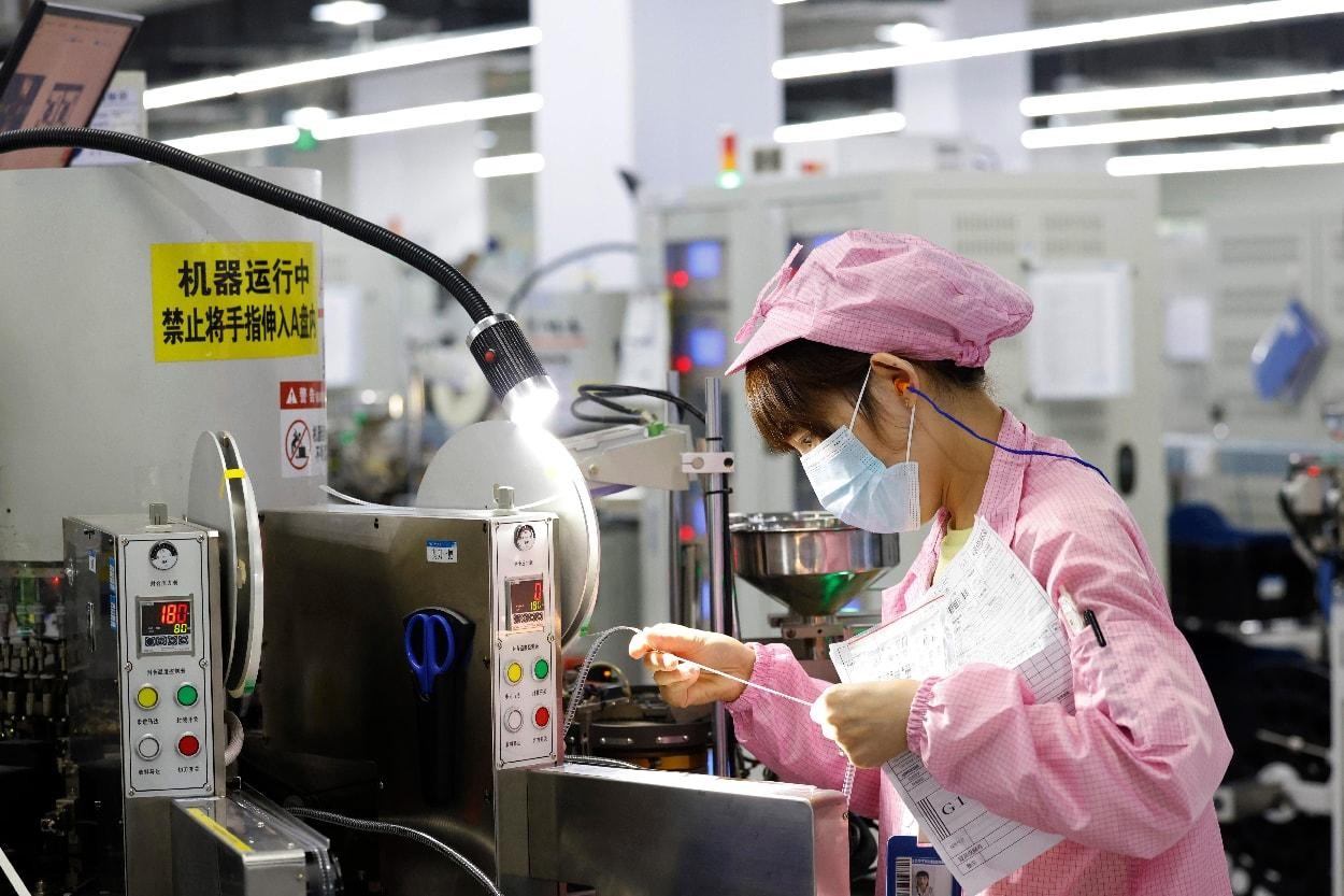 A female worker manufactures electronic chips at a semiconductor company in Suqian, east China's Jiangsu province. (Photo/Xu Changliang)