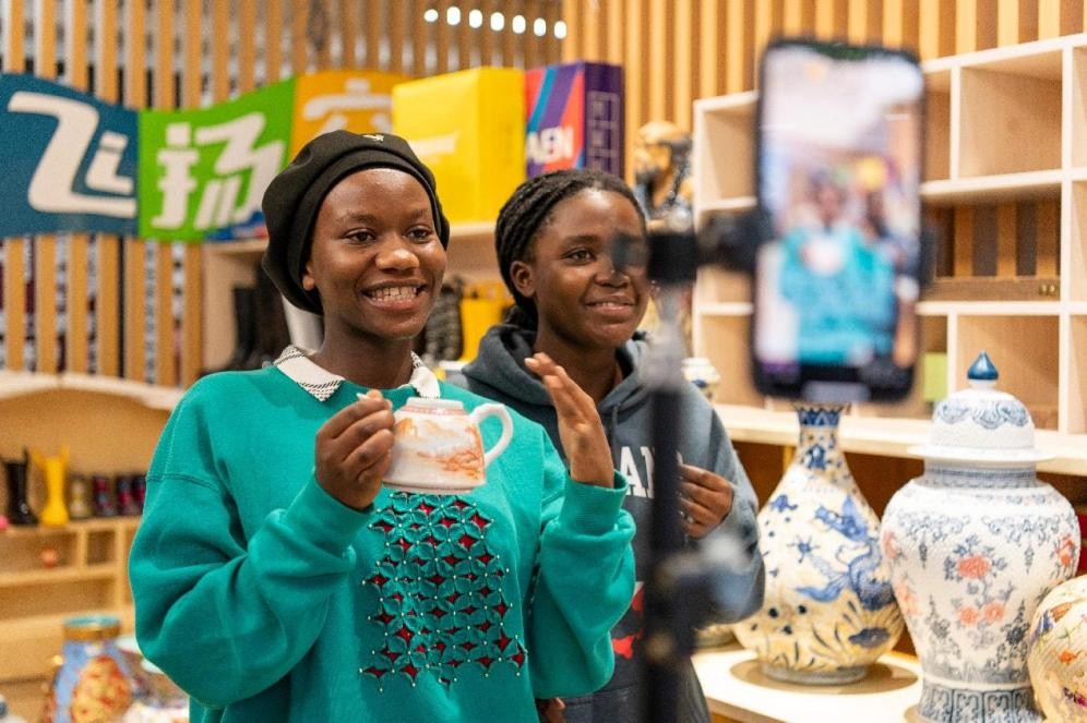 Students from Rwanda learn livestream e-commerce at Jinhua University of Vocational Technology in east China's Zhejiang province. (Photo/Hu Xiaofei)