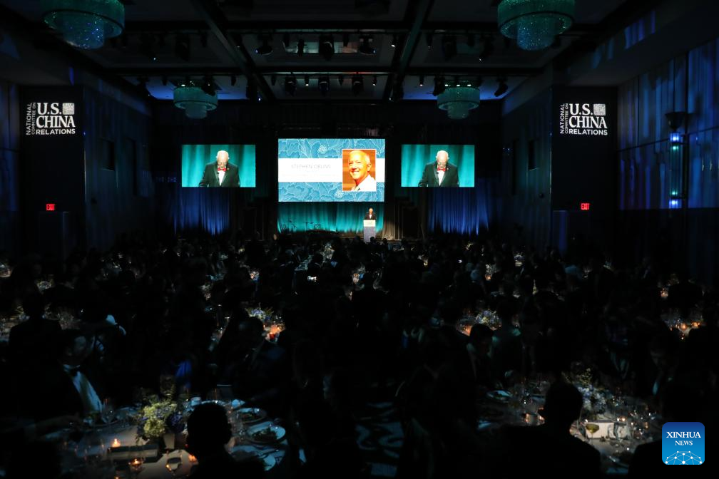 Stephen A. Orlins, president of the National Committee on U.S.-China Relations (NCUSCR), speaks at the annual Gala Dinner of the NCUSCR in New York, the United States, on Oct. 14, 2025. Speakers at the annual gala of the National Committee on U.S.-China Relations on Tuesday called for continued dialogue, practical engagement and increased collaboration between Washington and Beijing to stabilize the world's most important bilateral relationship. (Xinhua/Zhang Fengguo)