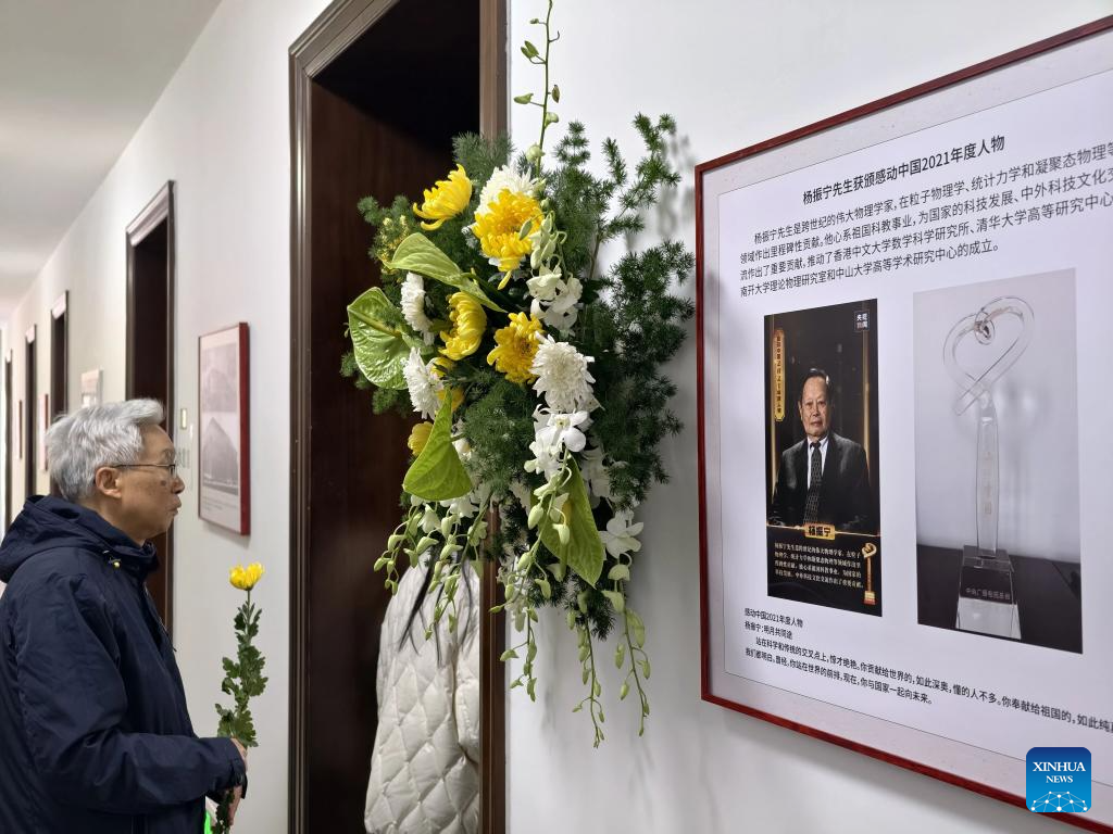 A man pays tribute to Chen Ning Yang at Tsinghua University in Beijing, capital of China, Oct. 19, 2025.