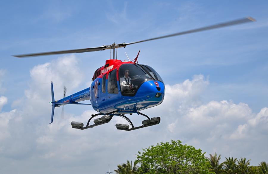 Tourists enjoy a helicopter sightseeing tour in Sanya, south China's Hainan Province, May 3, 2025. (Xinhua/Guo Cheng)