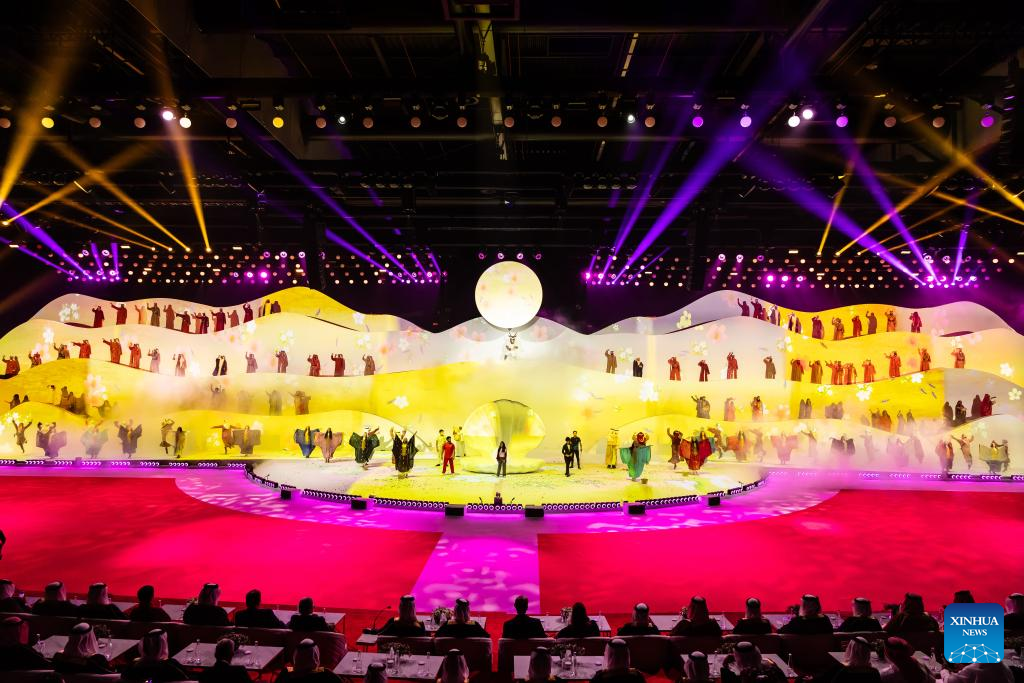 Artists perform during the opening ceremony of the 3rd Asian Youth Games at Exhibition World Bahrain in Sakhir, Bahrain, Oct. 22, 2025. (Bahrain Asian Youth Games Organizing Committee/Handout via Xinhua)