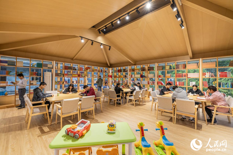Visitors browse books and enjoy a quiet moment inside a revolutionary culture-themed reading room in Shenshan village, Jinggangshan city, east China's Jiangxi Province. (Photo courtesy of the interviewee)