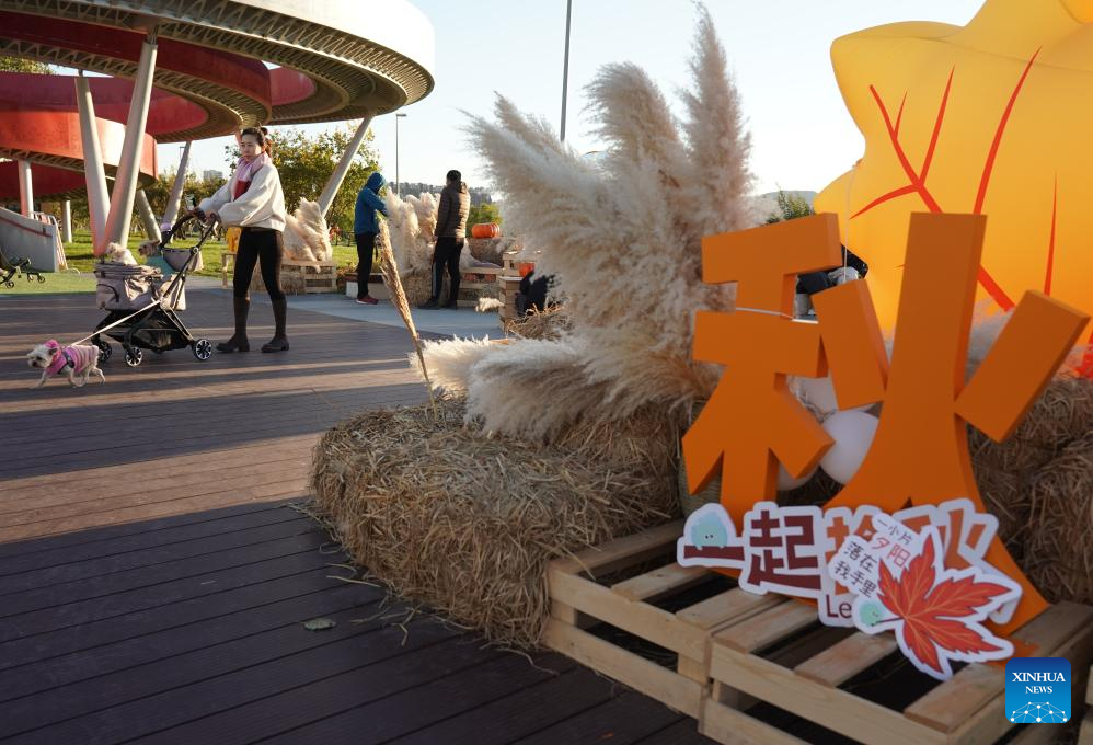 People enjoy themselves by the Yongding River in Shijingshan District of Beijing, capital of China, Oct. 26, 2025. (Xinhua/Zhang Chenlin)