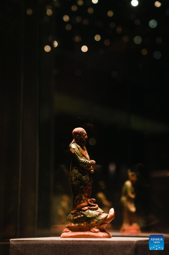This photo shows an exhibit at Kuizhou Museum in Fengjie County, southwest China's Chongqing Municipality, Oct. 27, 2025. Fengjie, a county in Chongqing where the Kuimen gateway to the magnificent gorges of the Yangtze River is located, gained its reputation as the "city of poetry," as poets, military figures and politicians in history wrote extensively about the forbidding landscape of rapid currents and narrow waterways.