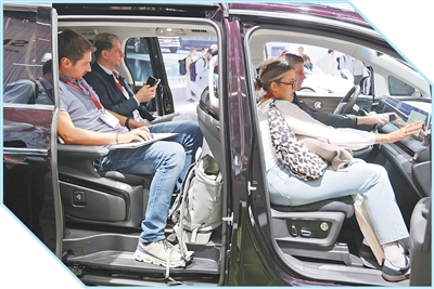 Visitors test drive a Chinese-made new energy vehicle at IAA Mobility 2025 in September 2025 in Munich, Germany. The expo attracted 116 Chinese exhibitors, the largest number among all international participants. (Photo/People's Daily)