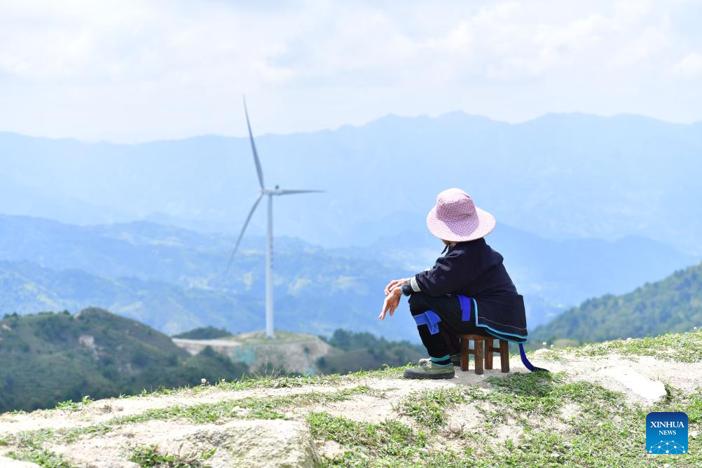 An elderly person gazes at mountains at Yaogao Village's high mountain natural pasture in Rongshui Miao Autonomous County, south China's Guangxi Zhuang Autonomous Region, Aug. 22, 2021. (Xinhua/Huang Xiaobang)