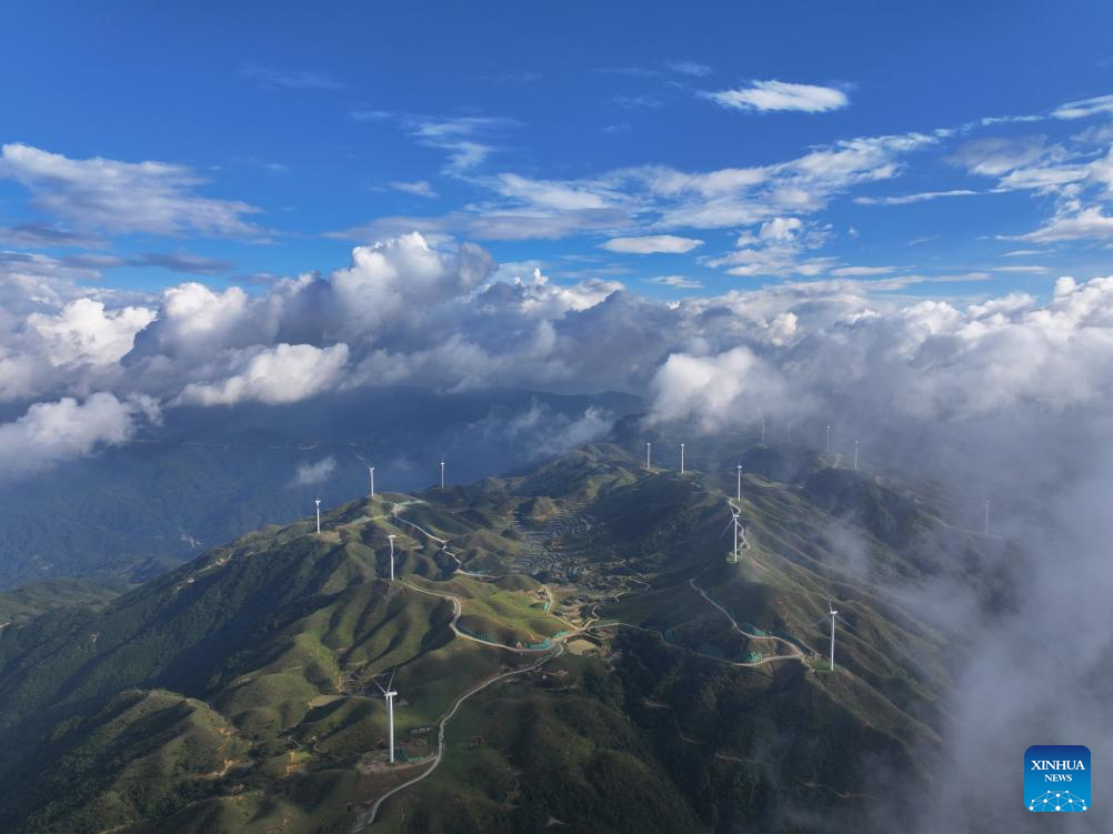 An aerial drone photo taken on Sept. 21, 2024 shows the Yaogao Village's high mountain natural pasture in Rongshui Miao Autonomous County, south China's Guangxi Zhuang Autonomous Region. (Xinhua/Huang Xiaobang)