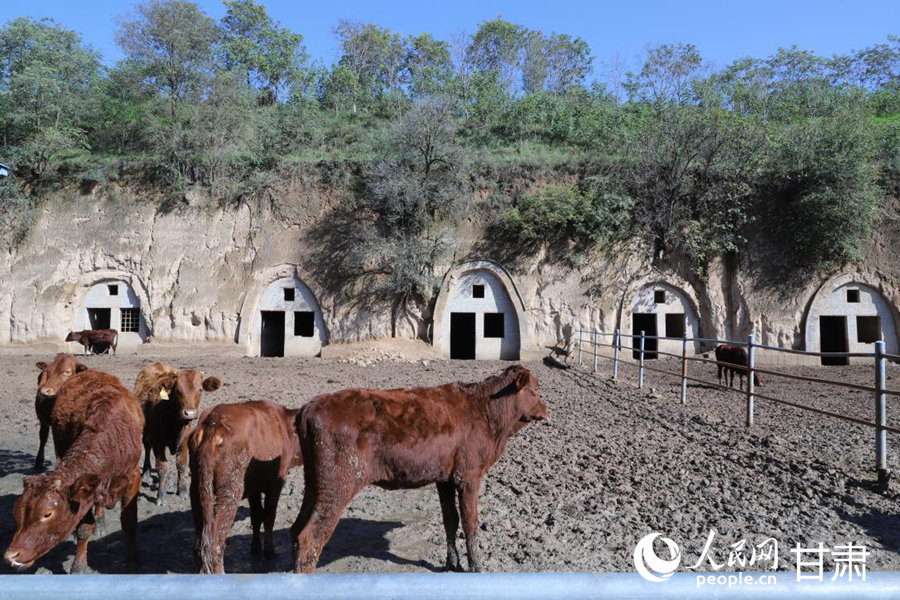Photo shows a cattle barn renovated from cave dwellings in Ganzhuang village, Huangzhai town, Chongxin county, Pingliang city, northwest China's Gansu Province. (People's Daily Online/Jiao Long)