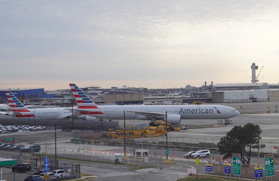 Airplanes are seen at the John F. Kennedy (JFK) International Airport in New York City, the United States, Nov. 5, 2025. (Xinhua/Zhang Fengguo)