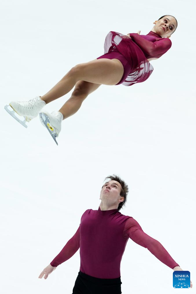 Maria Pavlova (top)/Alexei Sviatchenko of Hungary perform during the pairs skating short program at ISU Figure Skating Grand Prix 2025 in Osaka, Japan, Nov. 7, 2025. (Xinhua/Jia Haocheng)