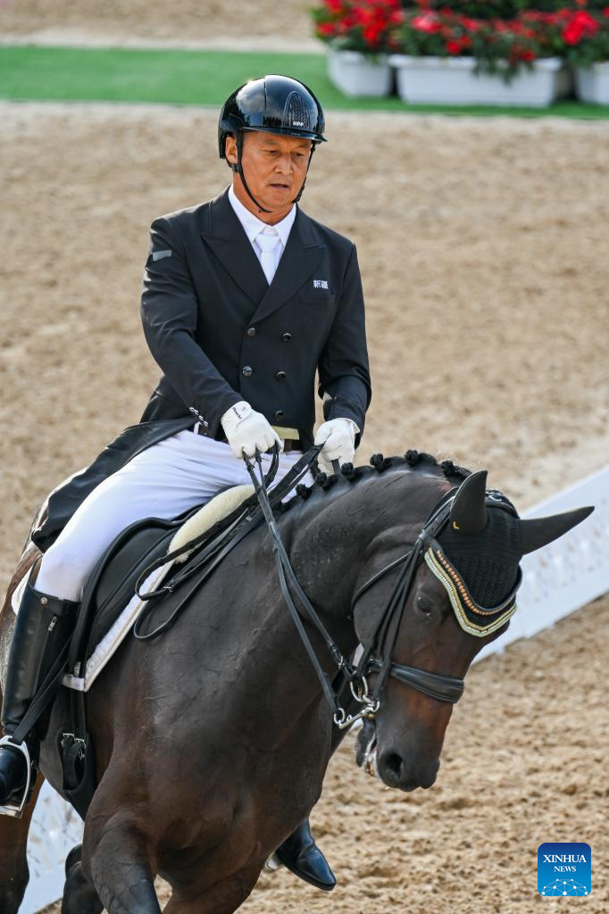 Liu Tao of Xinjiang competes during the equestrian dressage team final at China's 15th National Games in Shenzhen, south China's Guangdong Province, Nov. 10, 2025. (Xinhua/Lian Zhen)