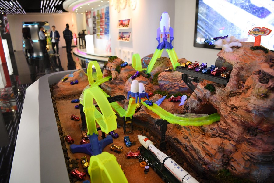 Toys are displayed at a toy company in Chenghai district of Shantou city, south China's Guangdong Province, Dec. 2, 2021. (Xinhua/Deng Hua)