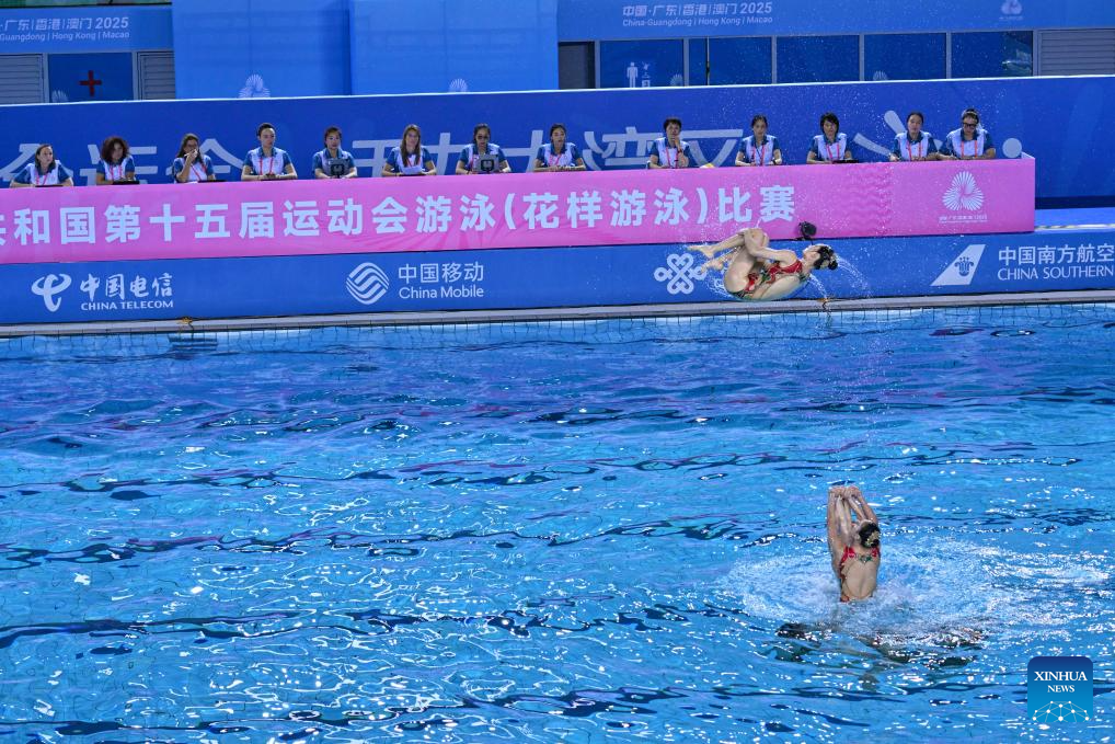 Team Sichuan perform during the team technical of artistic swimming at China's 15th National Games in Jiangmen, south China's Guangdong Province, Nov. 13, 2025. (Xinhua/Li Xin)