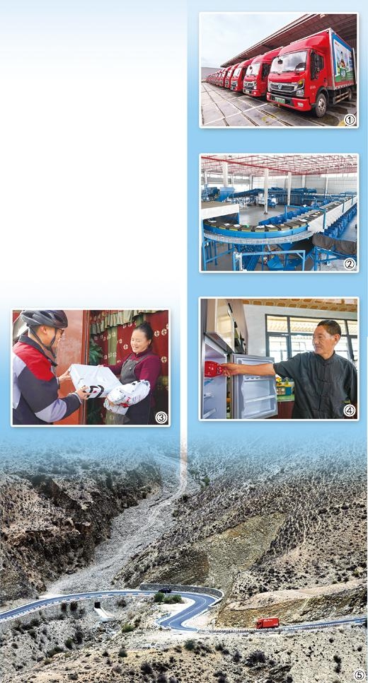 ⑤: Photo shows a JD Logistics delivery truck on a winding mountain road connecting Shannan city with Lhunze county in southwest China's Xizang Autonomous Region. (Photo courtesy of the interviewee)