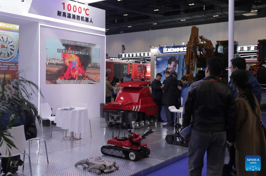 People visit the China International Emergency Management Exhibition (CIEME) at the China National Convention Center in Beijing, capital of China, Nov. 18, 2025. Kicked off here on Tuesday, the 3-day event boasted an exhibition area of about 40,000 square meters, with more than 300 exhibitors participating. (Xinhua/Guo Yu)
