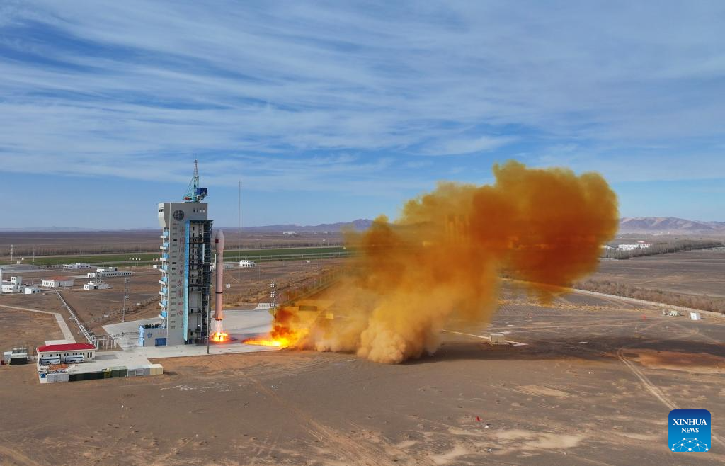 A Long March-2C carrier rocket carrying three new satellites blasts off from the Jiuquan Satellite Launch Center in northwest China, on Nov. 19, 2025. (Photo by Wang Heng/Xinhua)
