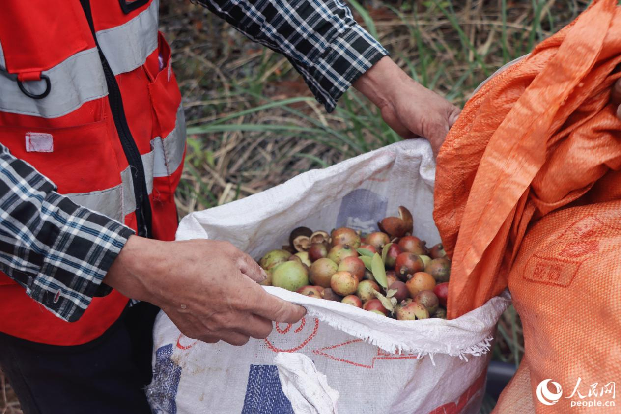 The mountain slopes here are covered in lush green trees heavy with tea-oil camellia fruits, creating a vivid scene of abundance. Local farmers have been busy picking ripe fruits, marking the start of a 40-day harvest period.