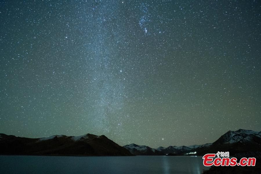Yamdrok Tso Lake, which means "the emerald lake of the upper pasture", sits at an altitude of 4,441 meters, and is revered as one of the three holy lakes in Xizang. In recent days, the Leonid meteor shower reached its peak, with about 15 meteors visible per hour.
