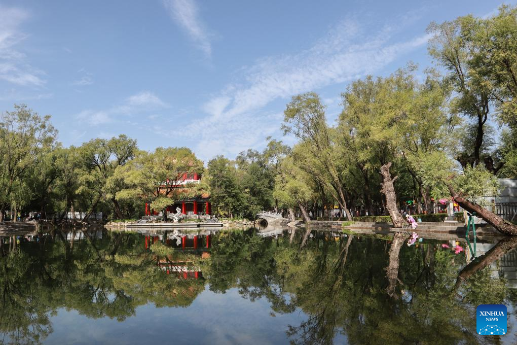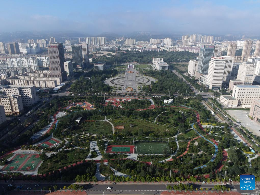 This photo taken on Sept. 6, 2025 shows a view of a park in Pingliang City, northwest China's Gansu Province. (Photo by Wu Xihui/Xinhua)