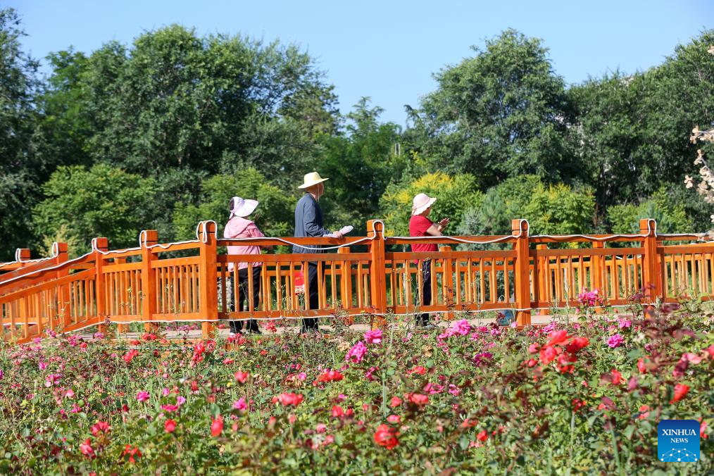 People visit a park in Pingliang City, northwest China's Gansu Province, July 7, 2025. (Photo by Wu Xihui/Xinhua)