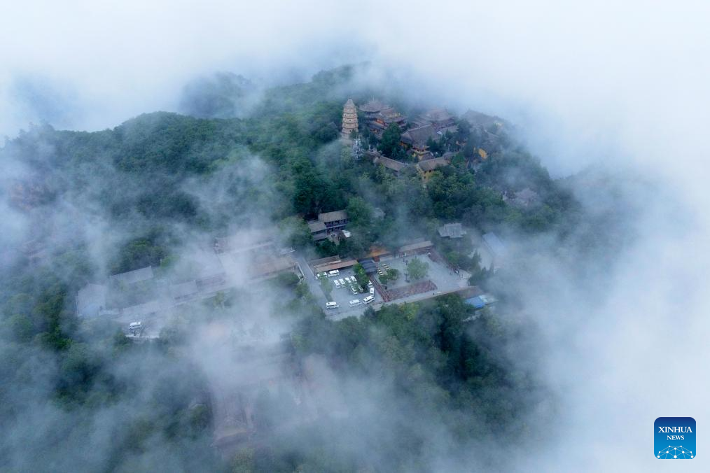 An aerial drone photo taken on July 11, 2025 shows a view of Kongtong Mountain in Pingliang City, northwest China's Gansu Province. (Photo by Wu Xihui/Xinhua)