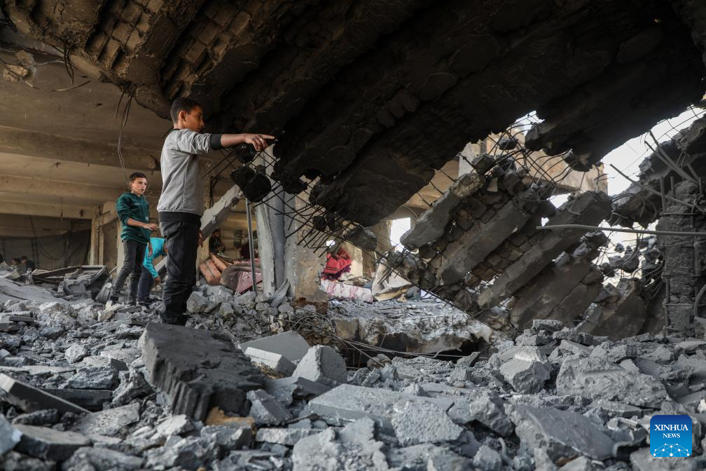 A Palestinian inspects the destroyed houses after Israeli airstrikes in Al-Zeitoun neighborhood east of Gaza City, Nov. 20, 2025. (Photo by Rizek Abdeljawad/Xinhua)