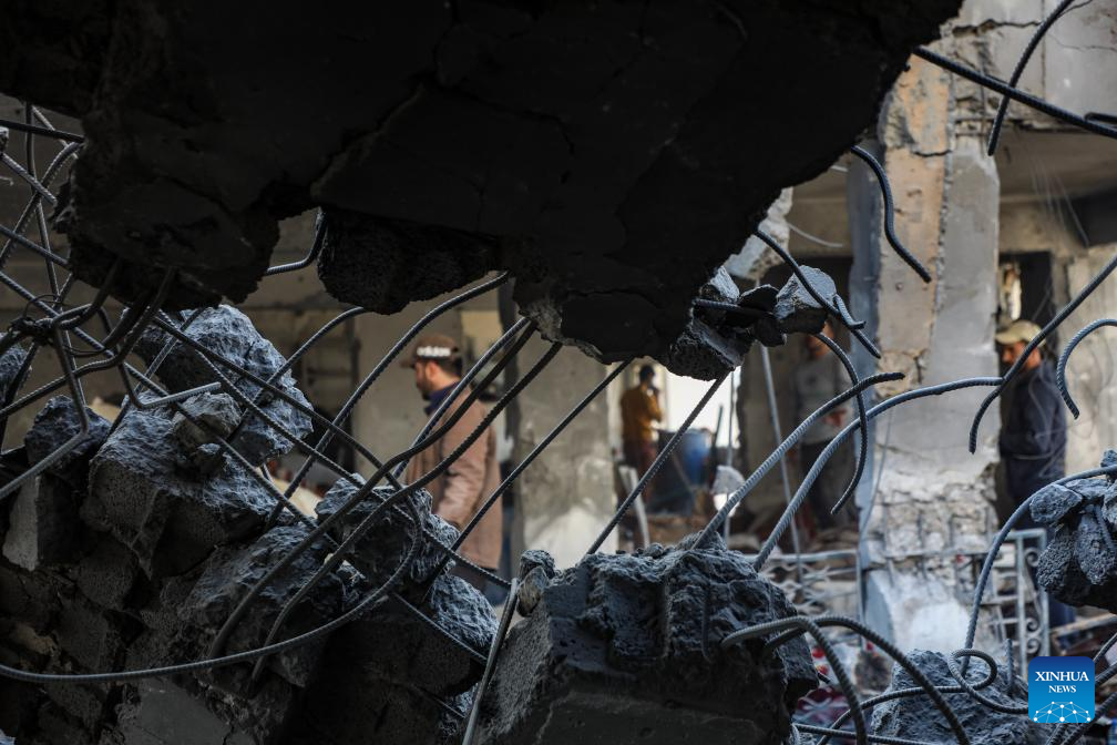 Palestinians inspect the destroyed houses after Israeli airstrikes in Al-Zeitoun neighborhood east of Gaza City, Nov. 20, 2025. (Photo by Rizek Abdeljawad/Xinhua)