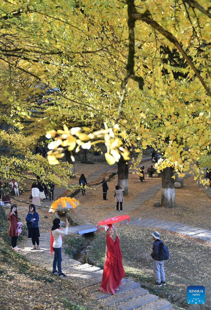 Golden ginkgo trees attract tourists in China's Henan