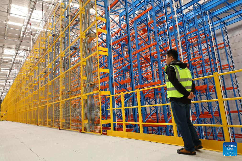 This comprehensive logistics warehouse, with a storage area of about 147,000 square meters, costed a total investment of about 1 billion yuan (about 141.24 million US dollars). (Xinhua/Fang Zhe)
