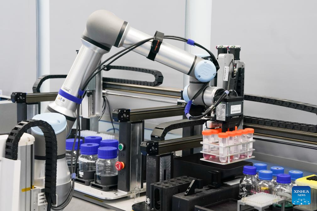 Researchers adjust robots at the state key laboratory of precision and intelligent chemistry of the University of Science and Technology of China (USTC) in Hefei, east China's Anhui Province, Nov. 24, 2025. Traditional chemical research has long relied on continuous trial and error by scientists. With the development of artificial intelligence and robotic automation technologies, it has become possible to design experiments and issue instructions through intelligent platforms, using robots to replace human labor in experiential operations, which enhances experimental efficiency and precision.