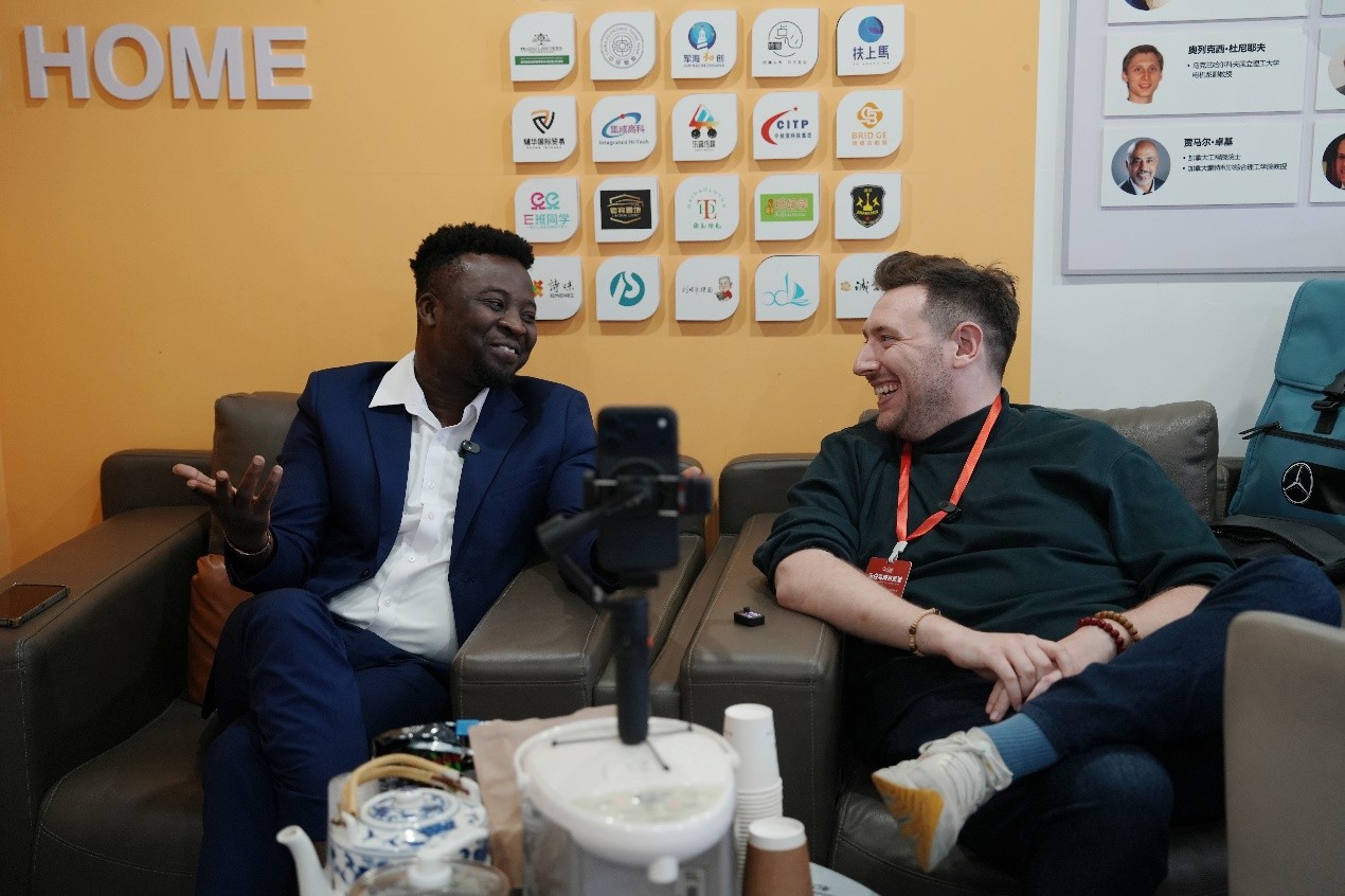 An interview with Amissah Richard Frank, an entrepreneur from Ghana, at the Haikou International Talent Community in Haikou, south China's Hainan Province. (People's Daily Online/Fu Wuping)