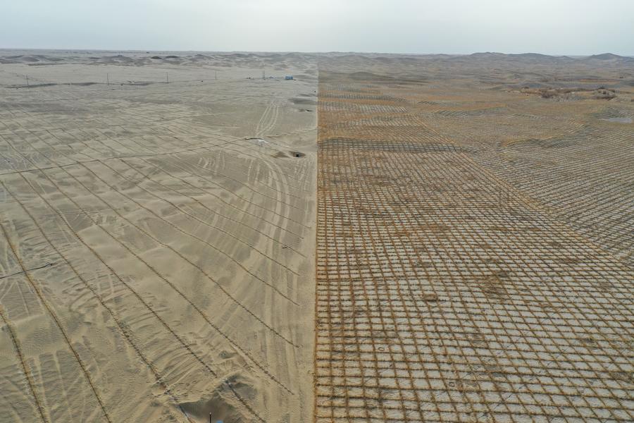 URUMQI, Nov. 28 (Xinhua) -- The Taklimakan Desert sand-blocking green belt project in northwest China's Xinjiang Uygur Autonomous Region, which celebrated its first anniversary on Friday, has effectively protected surrounding oases, farmland and grasslands by curbing desert expansion, with sand sources now under control.