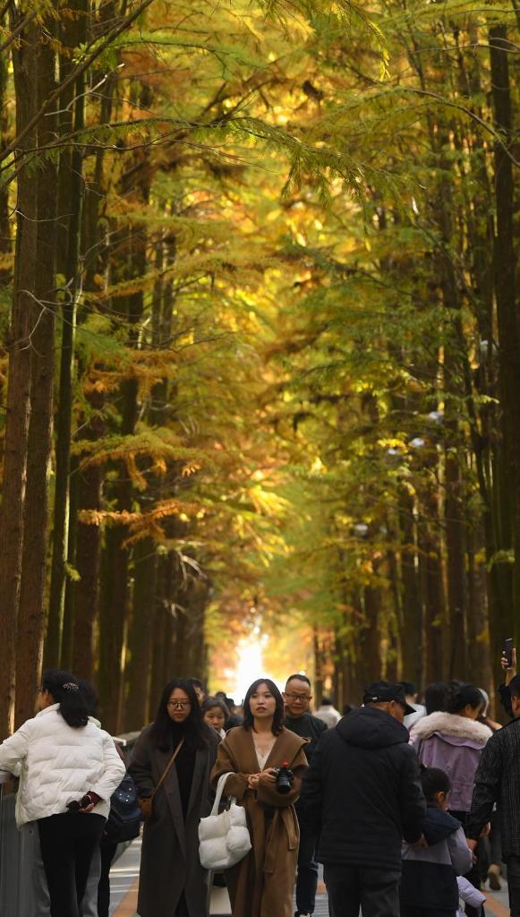 Tourists visit the Qingshan Lake scenic spot in Lin'an District of Hangzhou City, east China's Zhejiang Province, Nov. 28, 2025. (Xinhua/Weng Xinyang)