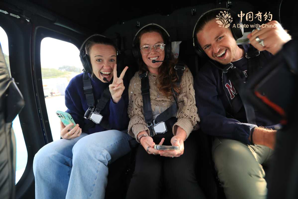 Content creators from the UK and South Africa enjoy their low-altitude flight in Shenzhen's Yantian district, South China's Guangdong province, on Nov 27, 2025. [Photo/chinadaily.com.cn]