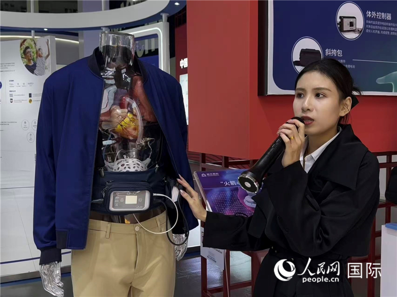 A guide introduces the implantable left ventricular assist system at the Boao Hope City Ever Lasting International Innovation Medicine Exhibition in the Boao Lecheng International Medical Tourism Pilot Zone in south China's Hainan Province, Nov. 19, 2025. (People's Daily Online/Xu Jingwen)