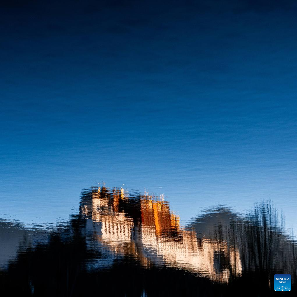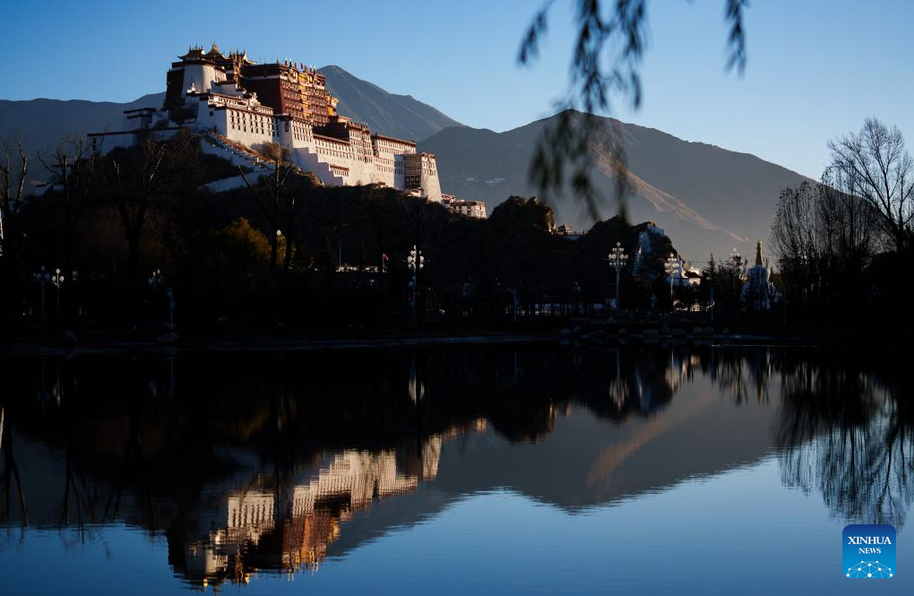 This photo taken on Dec. 5, 2025 shows the water reflection of Potala Palace in the morning light in Lhasa, southwest China's Xizang Autonomous Region. Built by Tibetan King Songtsa Gambo in the seventh century, the Potala Palace, a landmark building of Xizang, was included on the UNESCO World Heritage List in 1994. (Xinhua/Tenzin Nyida)