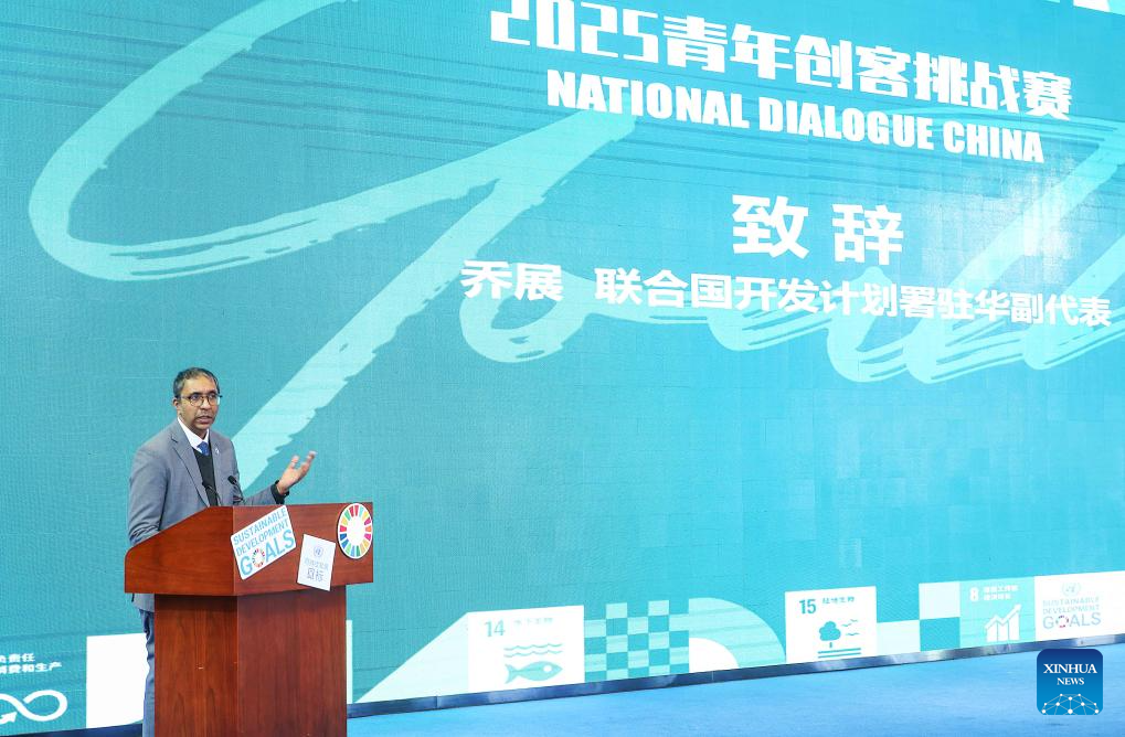 James George, deputy resident representative of the United Nations Development Programme (UNDP) in China, speaks during the 2025 National Dialogue China in Beijing, capital of China, Dec. 5, 2025. The event kicked off here on Friday, underscoring the growing role of China's young entrepreneurs in leading the country's transition toward a circular economy.