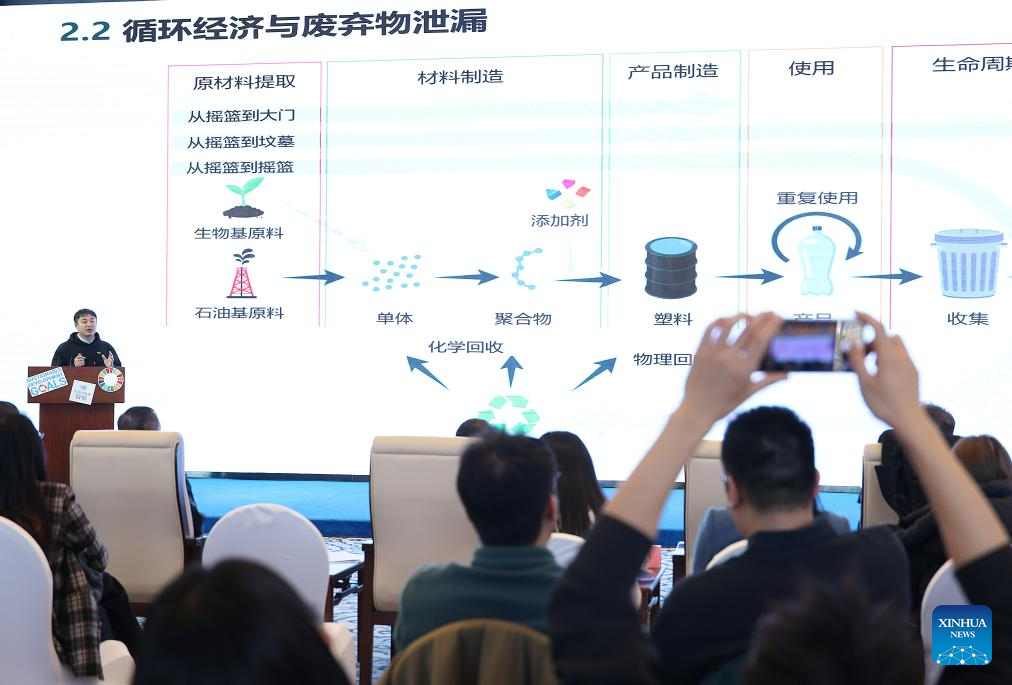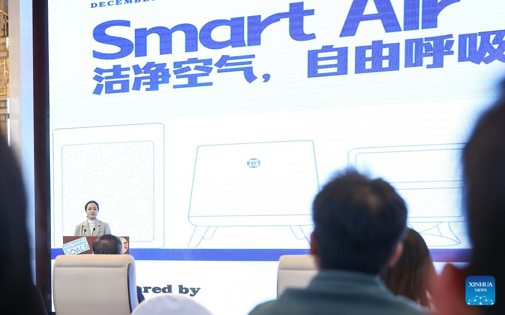An entrepreneur representative speaks during the 2025 National Dialogue China in Beijing, capital of China, Dec. 5, 2025. The event kicked off here on Friday, underscoring the growing role of China's young entrepreneurs in leading the country's transition toward a circular economy.