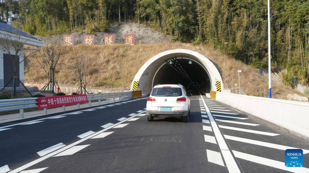 This photo taken on Dec. 9, 2025 shows a tunnel of the Shaxian-Nanping Expressway in southeast China's Fujian Province. The Nanping section of Shaxian-Nanping Expressway was completed and opened to traffic on Tuesday, marking the full operation of the expressway.