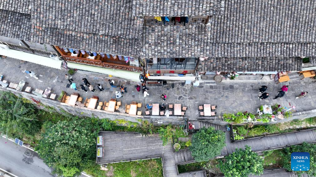 Tourists visit Gongtan Ancient Town in China's Chongqing