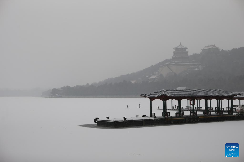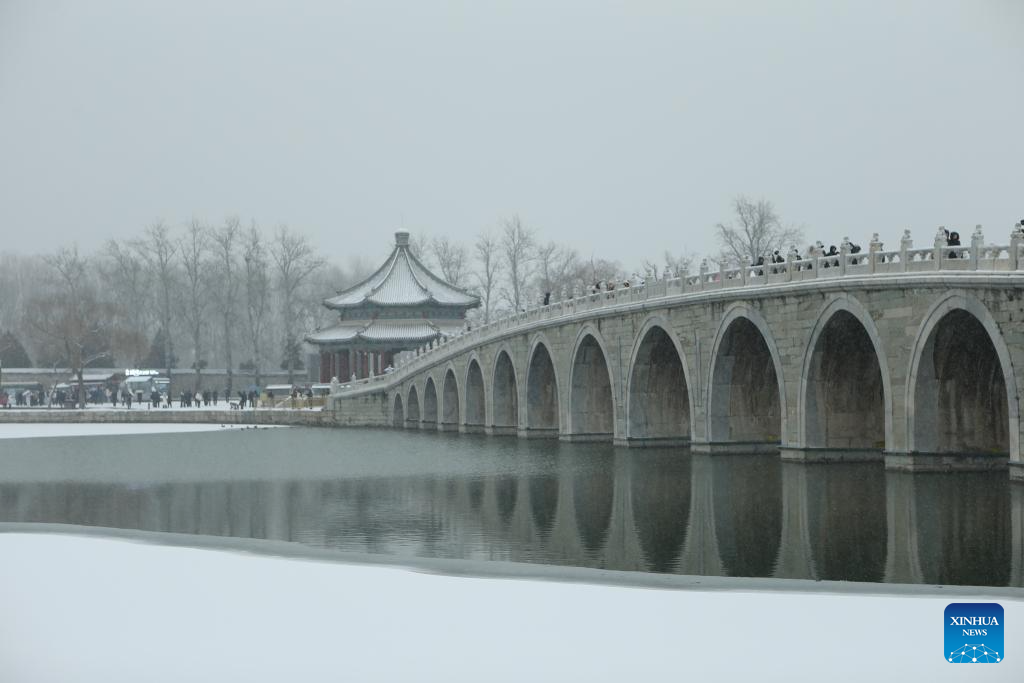 This photo taken on Dec. 12, 2025 shows a view of the Summer Palace amid snowfall in Beijing, capital of China. Beijing witnessed its first significant snowfall of this winter season on Friday. (Xinhua/Yin Gang)