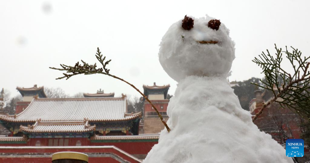 This photo taken on Dec. 12, 2025 shows a snow man at the Summer Palace amid snowfall in Beijing, capital of China. Beijing witnessed its first significant snowfall of this winter season on Friday. (Xinhua/Yin Gang)