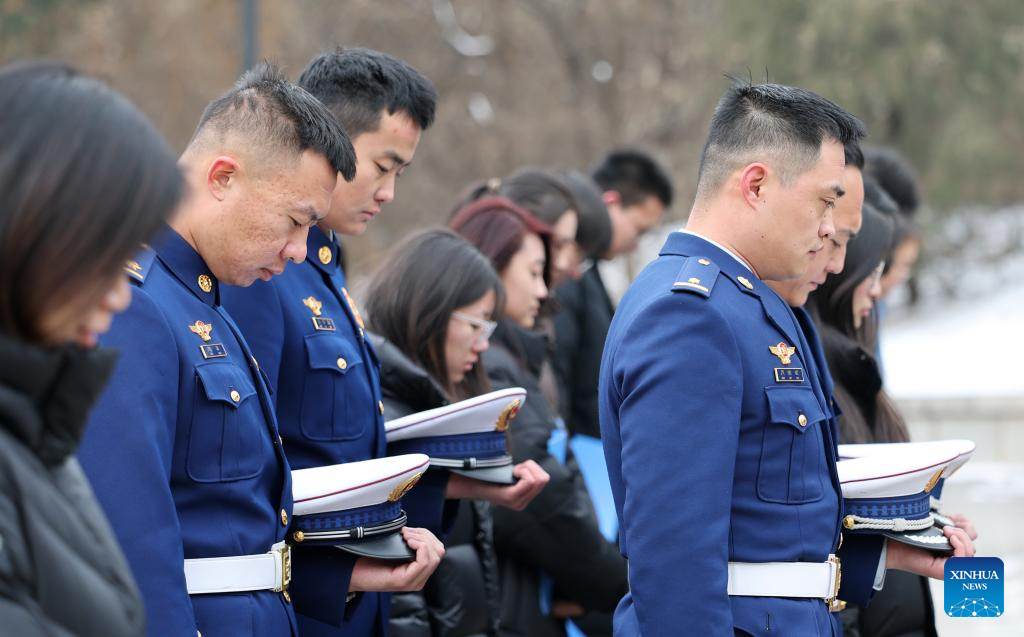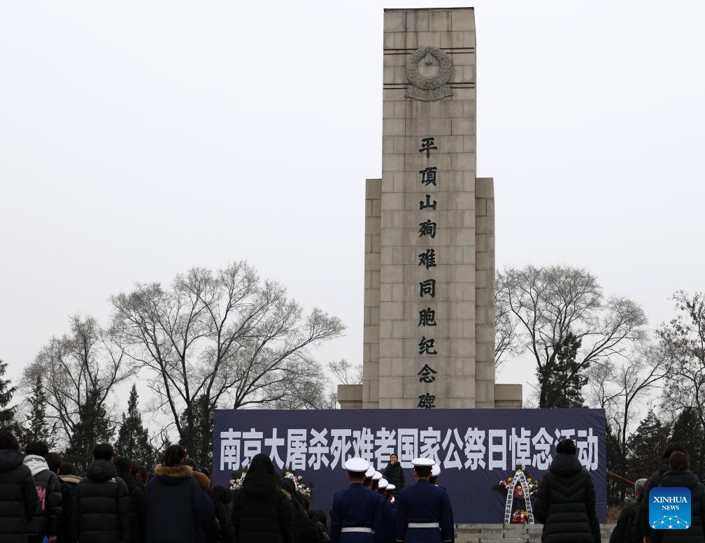 A memorial ceremony for the Nanjing Massacre victims is held at the Pingdingshan Massacre Memorial Hall in Fushun, northeast China's Liaoning Province, Dec. 13, 2025. The 12th national memorial day was observed on Saturday across the country to honor about 300,000 victims killed by Japanese troops during the Nanjing Massacre, in a year that marks the 80th anniversary of the end of World War II (WWII). (Xinhua/Li Gang)
