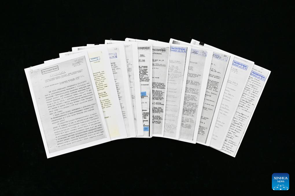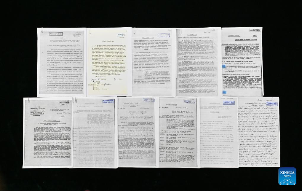 This undated photo shows some Russian-provided archive copies related to the infamous Unit 731, a Japanese germ-warfare unit that operated during World War II. China has received a batch of Russian-provided evidence related to the infamous Unit 731, China's Central Archives said on Saturday. The archive copies from Russia include trial records of Unit 731 members, investigation reports on the unit's crimes, and internal official correspondence of Soviet authorities, covering the period running from May 11, 1939 to Dec. 25, 1950. (Xinhua/Li Xin)